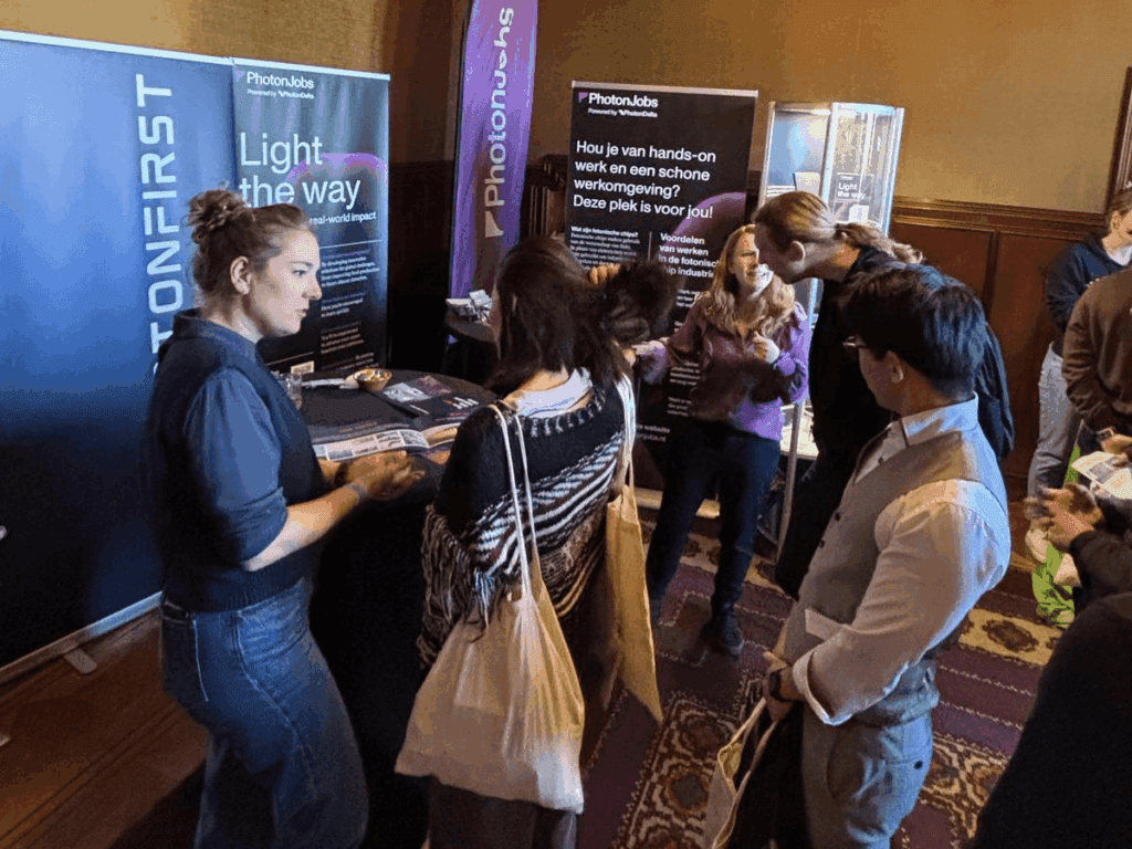 - Brand visibility & talent acquisition: Increase brand awareness and access a pool of potential candidates actively seeking internship and (future) job opportunities. Simplify your career fair experience by joining our Photonic Chip Industry career pavilion and add your flyers or give aways in our joint goodie bag. Seamlessly register at regular prices or explore tailored options for start-ups (offered by the career fairs or created by PhotonDelta).